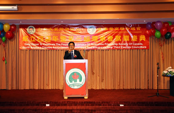 新一届同乡会庄会长少卿先生在致辞中总结过去,展望未来  10/8/2010