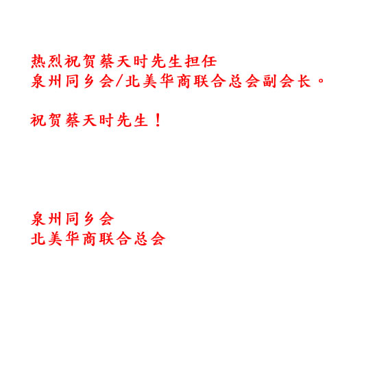 热烈欢迎蔡天时先生担任同乡会副会长  9/28/2011