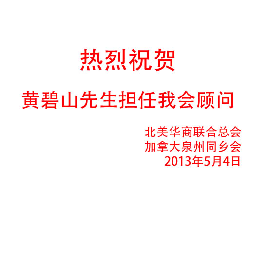热烈欢迎黄碧山先生担任我会顾问  5/4/2013
