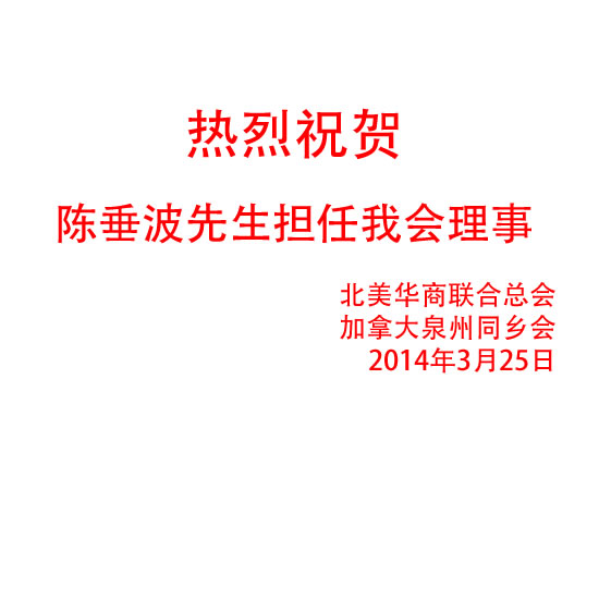 热烈欢迎陈垂波先生担任我会理事  3/25/2014