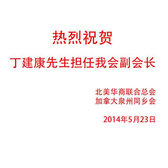 热烈欢迎丁建康先生担任我会副会长  8/10/2014