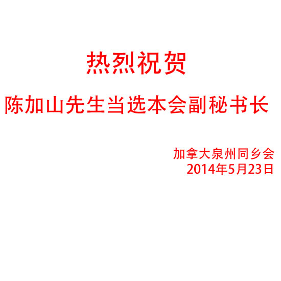 热烈祝贺陈加山先生当选加拿大泉州同乡会第五届副秘书长(候任)  8/10/2014