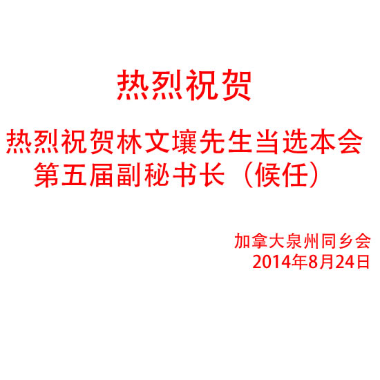 热烈祝贺林文壤先生当选加拿大泉州同乡会第五届副秘书长(候任)  8/24/2014