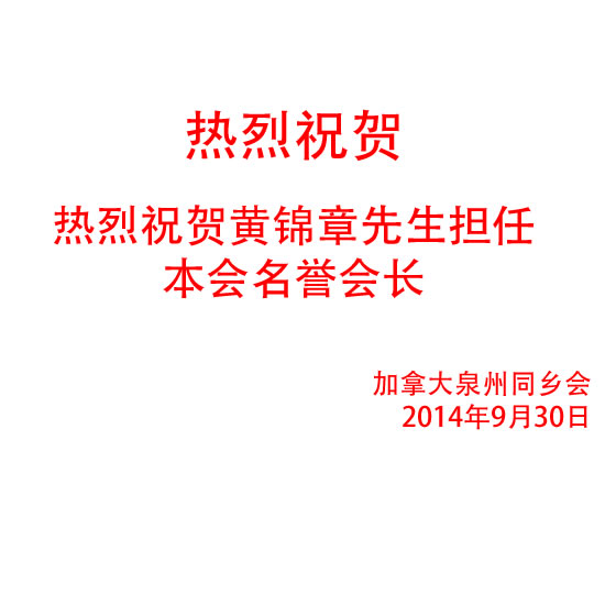 热烈欢迎黄锦章先生担任本会名誉会长  9/30/2014