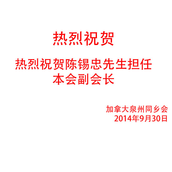 热烈欢迎陈锡忠先生担任本会副会长  9/30/2014