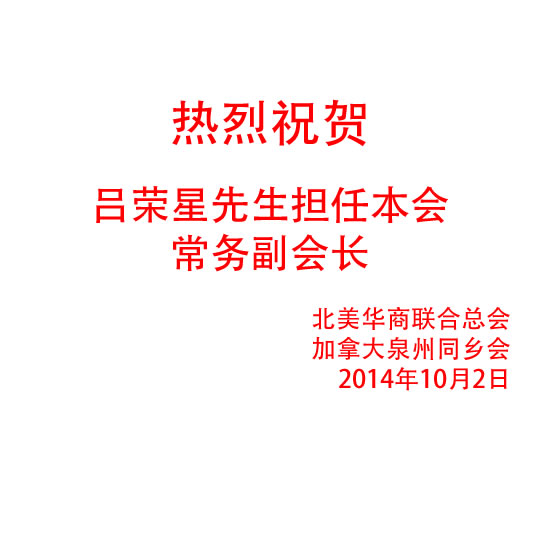 热烈欢迎吕荣星先生担任本会常务副会长  10/2/2014