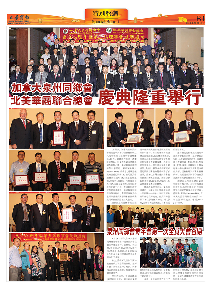 温哥华《大华商报》报道本会8周年庆典  10/10/2014