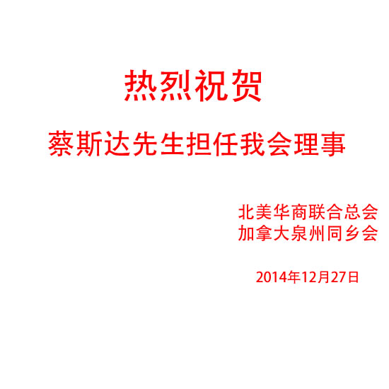 热烈祝贺蔡斯达先生担任本会理事  12/28/2014