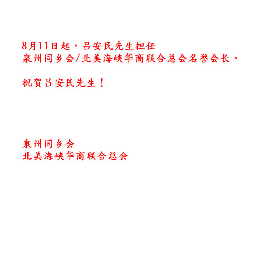 热烈欢迎吕安民先生担任同乡会名誉会长  8/14/2010