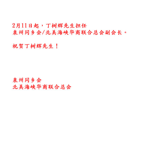热烈欢迎丁树辉先生担任同乡会副会长  2/11/2011