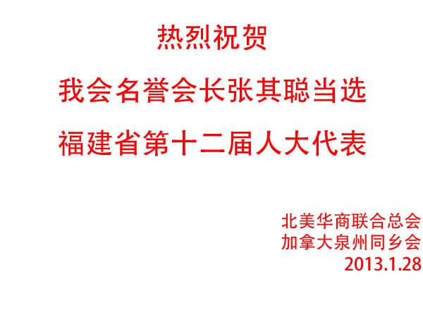 [福建快讯] 我会名誉会长张其聪当选福建省第十二届人大代表  1/28/2013