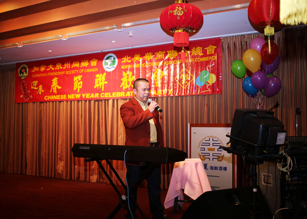 2013新春晚会上,常务副会长王艺强现场献唱闽南语歌曲《欢喜就好》  2/11/2013