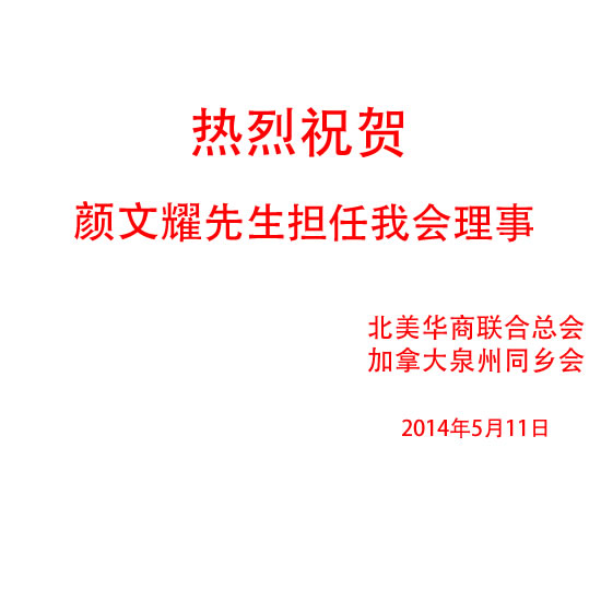 热烈欢迎颜文耀先生担任我会理事  5/11/2014